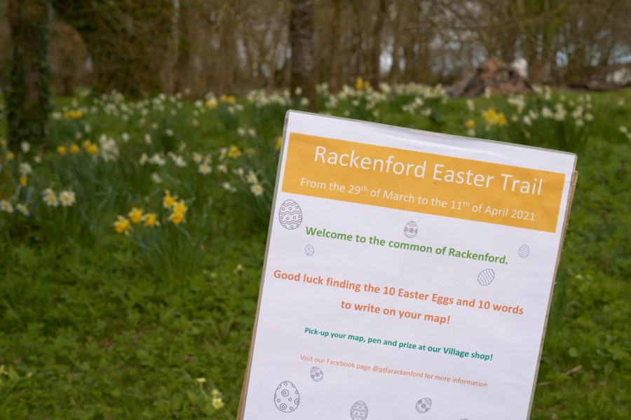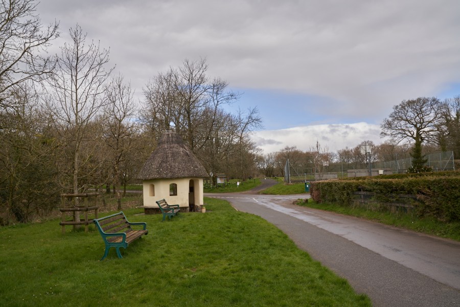 It’s had a basketball/tennis court built some time ago, and more recently a replacement thatched building to house the village pump, the inside of which is abundant with signage, A4 laminates of suggested walks, and a miniature Easter garden. Elsewhere is a death slide (or whatever less scary name they’re called these days), laminated Easter eggs for an Easter trail, thoughtfully placed bits of pallets to help one navigate over the squelchier bits of terrain, football post, and the remnants of an old building, in the process of being redeveloped (one of two signage boards tells me).