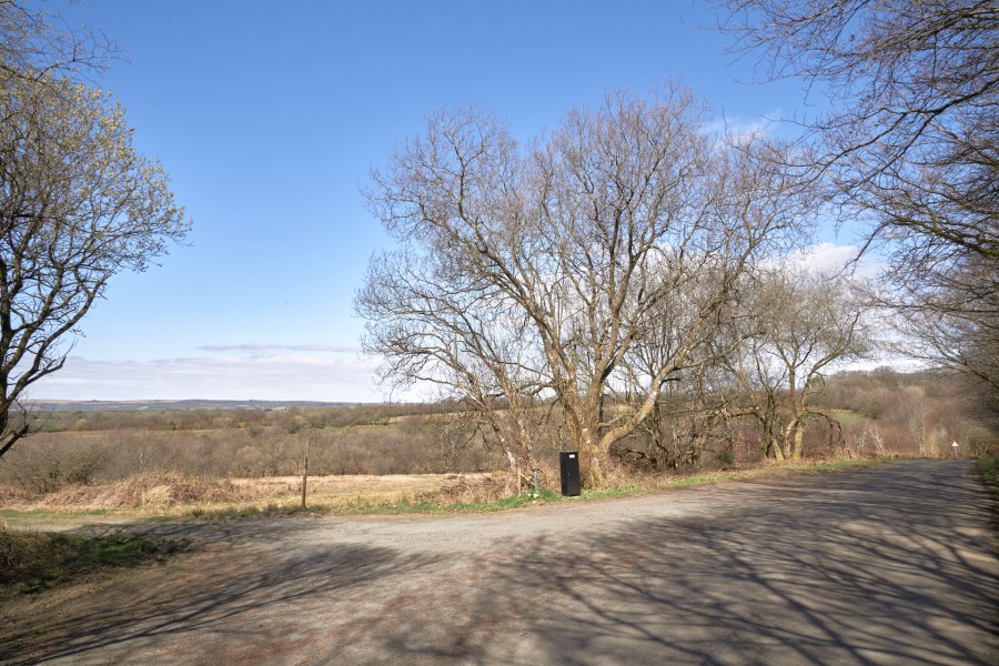 Witheridge Moor isn’t very big, but it’s big enough for one to feel in a distinct place. It’s divided by the crossroads into three very difficult segments. One is easily accessible – true moor, wet underfoot, lots of winter-pale molinia, moss, clumps of birch and willow. It’s largely devoid of paths, and entirely devoid of well-trodden public footpaths, so most of the moor is a struggle to penetrate – a place existing for itself, uncurated. Nevertheless, a couple of Range Rovers pulled up while I was lurking there, disgorging a couple of families with their dogs – so it’s a local spot to spend time together.