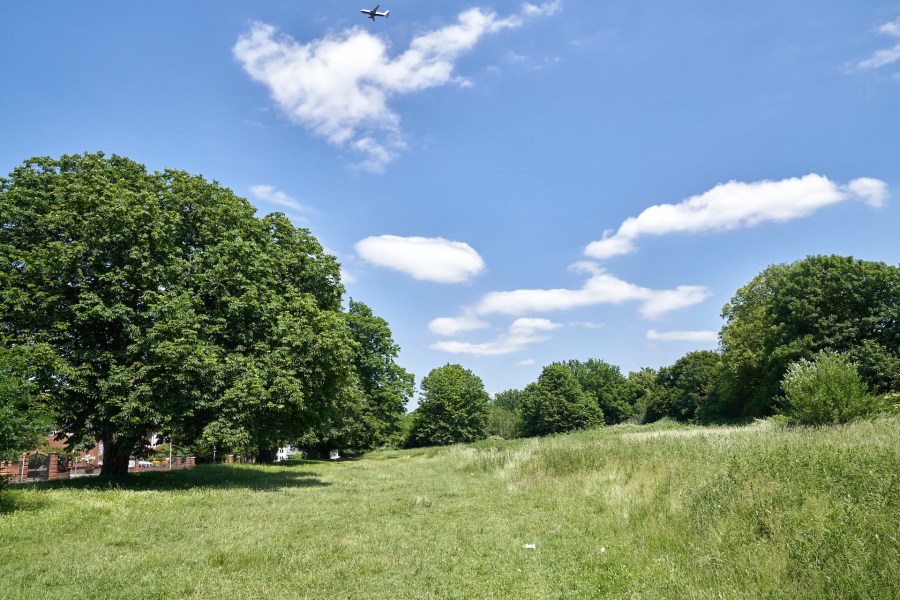 I walked from there into Richmond Park and out again, the heat building, and grateful for any shade I could find. I was looking for Pesthouse Common and the A-Z wasn’t very helpful – it seemed that the named common included playing fields which appeared to be attached to a school, and I couldn’t imagine that to be Access Land. When I came across it, I found a verge common, a small patch of grassland bordered by mature plane trees. There was a helpful information board explaining it to me – how the Pesthouse was a plague hospital, now pulled down, and that the common is a vestige of a much larger common which stretched to the Royal Park, until even that was enclosed for a workhouse and burial ground. In many ways, Cholmondeley Walk and Pesthouse Common are quite similar – you’d not know either to be commons really, and both are long and scruffy. But they’re opposites, for if Cholmondeley is a reminder or access preserved, Pesthouse is a reminder of it withdrawn. And though, of course, any patch of green space is a good thing for wildlife, Pesthouse didn’t seem to have any kind of human life past that historical signage; there were no paths through the long grass, no graffiti, not even any litter. Pesthouse Common was chipped away at until it became an irrelevance.