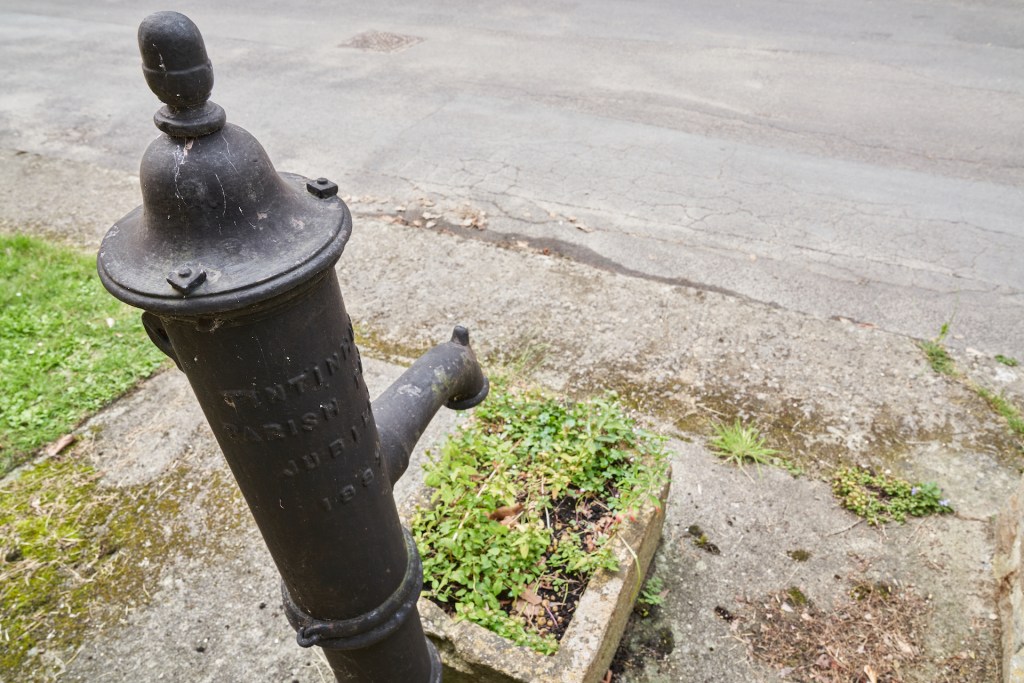 I was a bit excited to note that Langport is close to Tintinhull, a pretty village near to the A303 with a small National Trust property with an excellent little garden. Tintinhull is home to, according to the commons register, eight commons. These are a bit unusual, which is why I wanted to visit. In addition to more usual mini commons – verges and a pound – there is a car park, a village pump and a tree, the Coronation Tree. Now, there are quite a few car parks and village pumps which are registered commons – again, a reminder that commons are about access to resources as much as they are about land – but I don’t think there are any other commons that are trees. Alas, I was just days away from discovering DEFRA’s (also incomplete) data maps of registered commons, which would have pinpointed exactly where all these places are, so I had to use a bit of sense, Google Maps and asking around. No-one knew where the pump was, but I tracked it down from a photo on villagepumps.org.uk (where else?) It’s rather folorn and not at all enlivened by its commemorative plaque from Victoria’s Golden Jubilee.