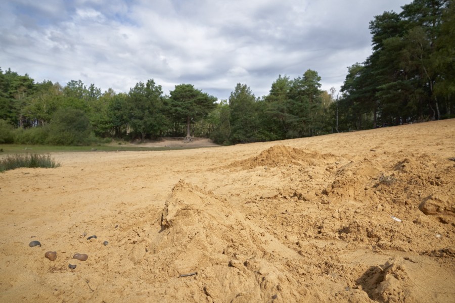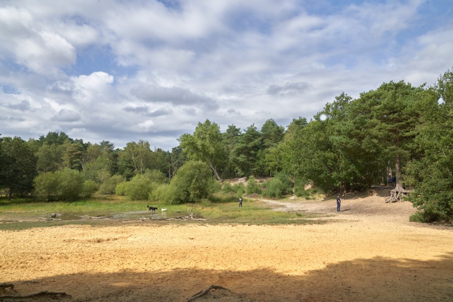 Horsell’s Sand Pit is famous enough to have a special pathway leading up to it and a Blue Plaque – somewhere or other – bestowed by Mark Kermode. Originally a sand quarry, and in spite of patches of heather, birch and ponds, it is still indeed very sandy and in this, it’s quite unlike literature’s other famous common-land sand pit, Roo’s Sandy Pit up on the Ashdown Forest. It’s even sandy enough to encourage some rudimentary attempts at building sandcastles.