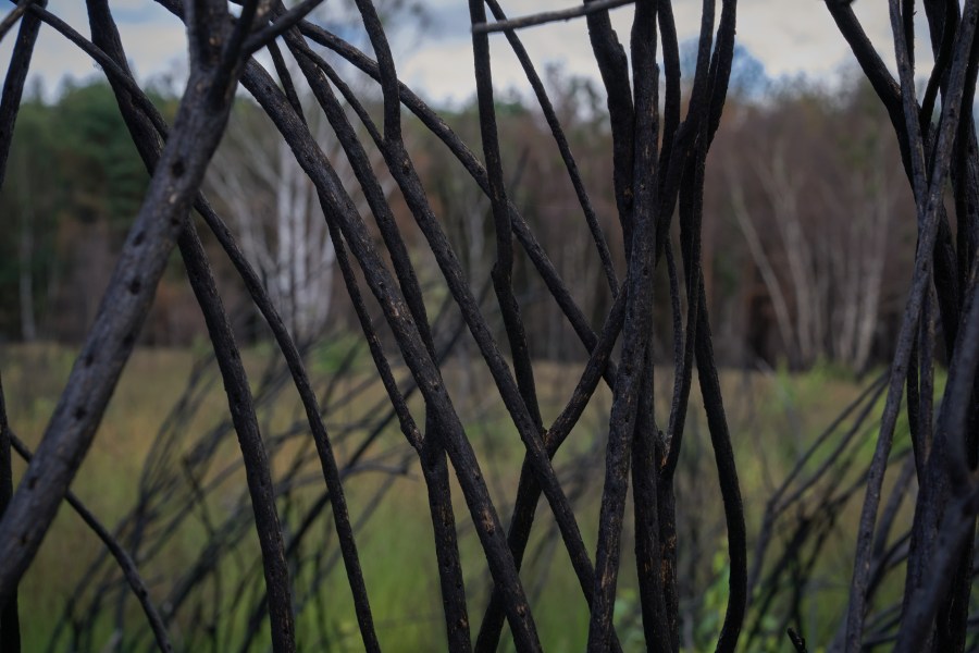 It also includes remnants of a small blaze dating back some years. Enjoying the sense of the weird of this spot – burned gorse leaves the most impish, twisted shapes – I pocketed a small pebble still scorched by the blaze. I always find scorched stones slightly unsettling; stone presents to me a sense of imperviousness through its hardness – though of course a friction-smoothened pebble demonstrates it is anything but. English is, of course, rich with metaphors telling me of the solidity of stone, and so seeing this thin layer of carbon clinging to the surface suggests to me the mutability not just of stone but of everything. This is one of Wells’ major themes in War of the Worlds, which exposes the falsity of British – and indeed white – imperial arrogance, and indeed this is the note on which the novel ends.