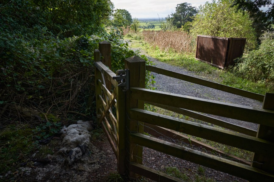 Although the hotel isn’t on common land, it is bordered by it, and I headed steeply down a track towards it. It was hard to see into the hotel, making it all the more tantalising, as did the dead sheep blocking one gate leading to it, and the neglected steps leading to the other.