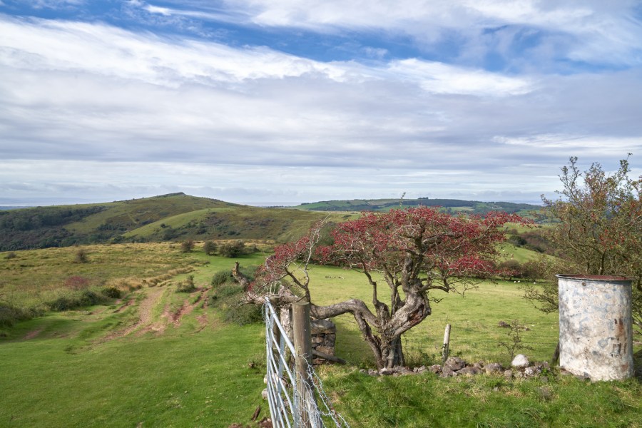 The common includes the ridge of high peaks and their southern and western flanks down to the agricultural land sloping down to the flatlands of the Somerset Levels; north is enclosed and given over to grazing. There are rights of common to graze sheep, goats, cattle, horses and pigs and also estovers (collecting fallen or dead vegetation) and turbary (collecting peat or turves for fuel). There are rights for ‘coveys’, which either means partridges (it’s their collective noun) or is a misspelling of ‘coneys’, meaning rabbits. I suspect the latter, given the extensive burrows, and the existence of pillow mounds on Shute Shelve Hill (which has near-identical rights).