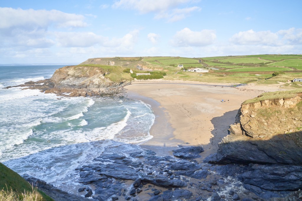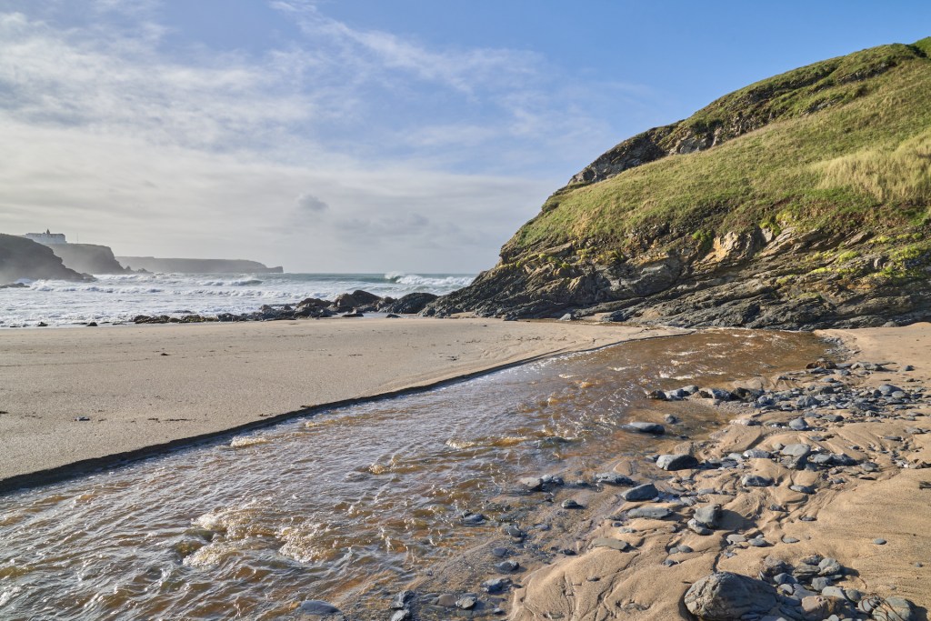 I arrived at Church Cove before ten, with the morning sun still rising, and the car park still almost empty. It’s a popular tourist spot, owned by the National Trust, and a place where you can get some clifftop walking and beachcombing done without walking too far or dealing with any stiff climbs. It’s also home to St Winwaloe’s Church which dates back to at least the c.13th.
