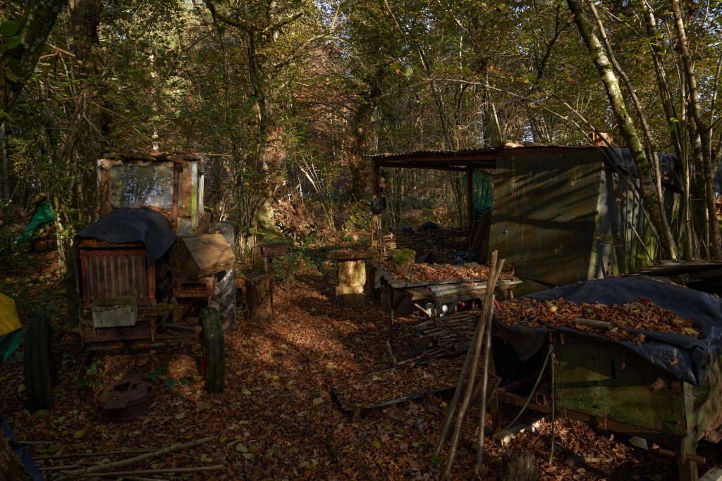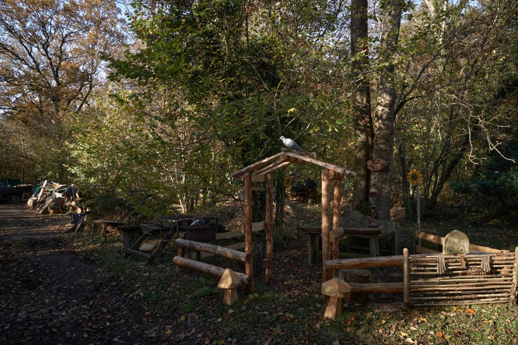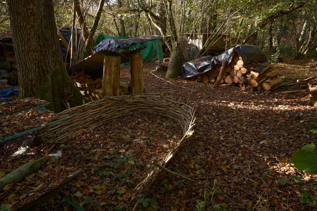 Ava Rest, beloved of Wilton’s community Facebook group, is at the entrance to Jerry’s woodyard, a similarly informal arrangement of trailers, tarps, baskets, willow fencing, an old tractor with a sign saying ‘Members Only’ guarding a little covered area with clean, neatly hung cutlery and mugs. I got every excited, at this point not knowing that the people of Great Wishford aren’t allowed to cut wood, imagining this to be some kind of continuation into the c.21st of ancient rights of common.