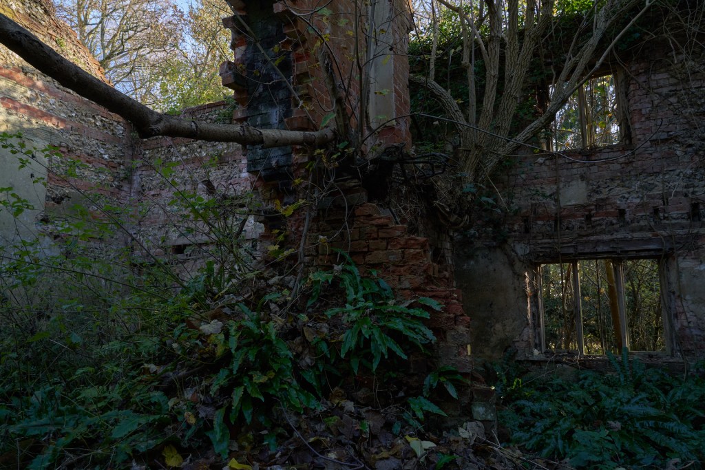 After a little while, I came across a derelict pair of cottages, their roofs long since caved in, their interiors slowly filling with brick as entropy sets in. Had the afternoon not been quite so golden, it would probably have been an unsettling place to linger, but I enjoyed lingering here.