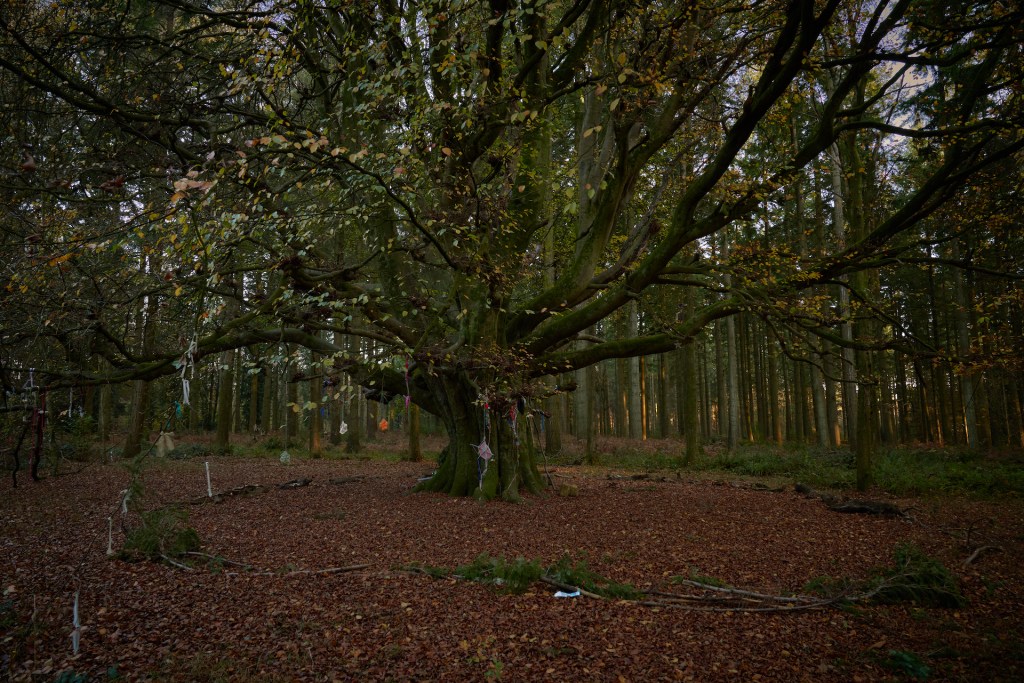 But research closer, and stories start to emerge. A fair few google hits for Grovely are for four sacred and ancient beeches, sites of neo-pagan pilgrimage and bedecked with dream catchers, ribbons, even a Minion key-ring and a Birra Moretti offering. The story goes that the beeches mark the graves of the Danish Handsel sisters, murdered in the wood by a mob for bringing smallpox to the nearby village of Wilton by means of witchcraft in 1737. And the Handsel sisters, who’ve been seen from time to time, aren’t alone in their haunting, for they’re joined by the Burcombe Woodman, a presence who met an untimely end either by hanging or shooting.