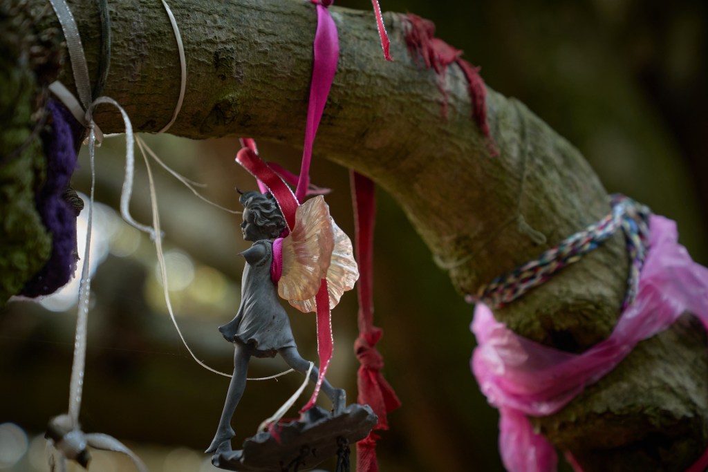 I’d expected to follow another winding track to take me back to the car but got confused by a sign and found myself back on First Broad Drive. Walking along, I spotted a couple of impressively old beech trees in the ever-diminishing light, then glimpsed ribbons in amongst their branches, and knew I must have arrived at the resting place of the Handsel sisters. I’d written off trying to find these, so can’t help but wonder if a draft of water from Glastonbury’s Chalice Well the previous evening had guided me to get so productively lost.