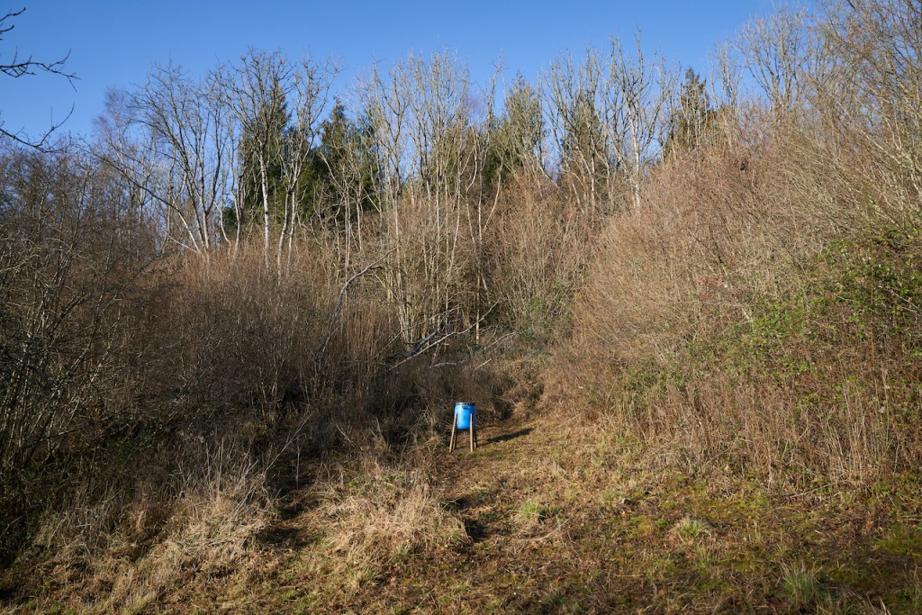 One of the great surprises was the extent of pheasant hunting in this corner. I came across several pheasant pens – one of sufficient longevity to be marked on the map – fenced, combination-padlocked, with CCTV and fake owls. I came across game feeders and a tarpaulin covering beneath which was a circular table about the right size and height for resting pints of beer. This was a much less slick operation than the pizza oven shed with parking spaces operation I’d found at Great Ridge. Nevertheless, I made my assumptions as to what kind of people must be involved (posh Norman descendants no doubt) and found myself bristling with indignation about the despoilation of the natural world, attacks on the right to roam etc. etc.