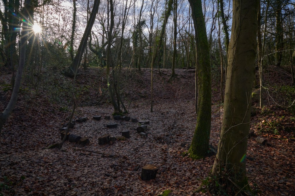 There are other marks of older times – Windmill House (minus the windmill, alas) and a Victorian chimney leading down to a shaft for the Hastings line tunnel which runs through the sandstone beneath the common. It’s been even more thoroughly quarried than Fawke and Bitchett, and one of the larger quarries has been turned into a kind of hippy glade, complete with clouties; being close to a town, Sevenoaks Common continues to be personalised by those using it.
